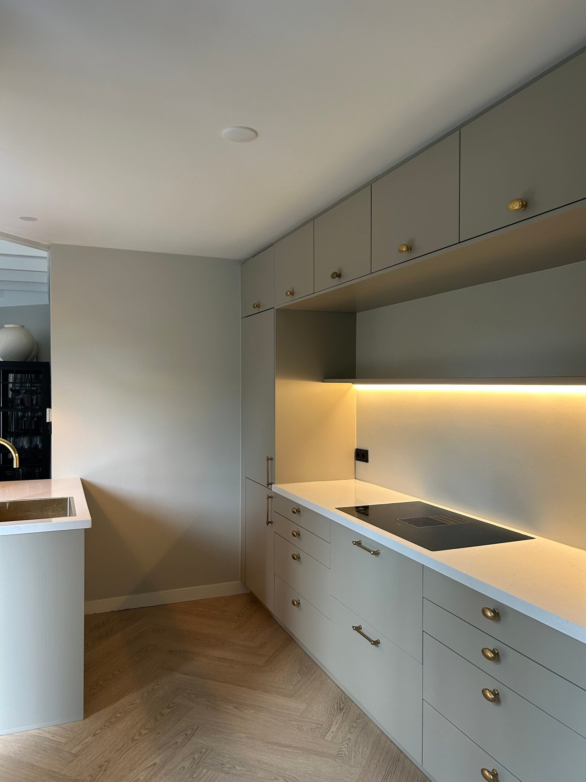 Het demonteren en monteren kunnen wij ook voor u verzorgen en uiteraard ook het schilderwerk van de zichtbare zijpanelen, sierlijsten en bv. de kopse kanten van de keukenkasten.